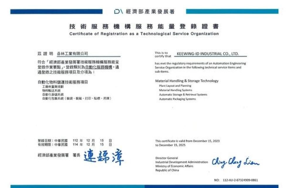 為確保我們的服務具備最高品質與安全標準,岳林工業已取得: