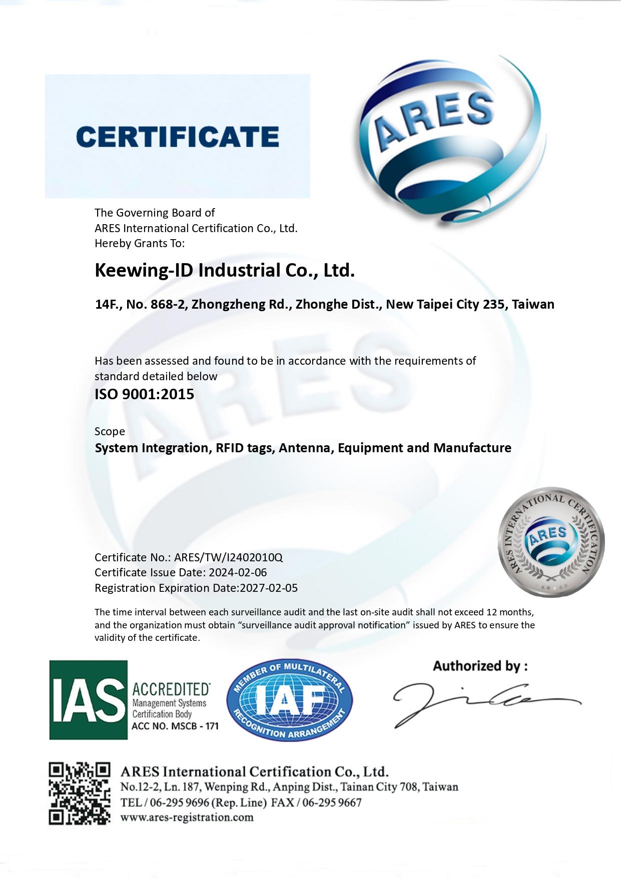 ISO 9001 國際品質管理系統認證
